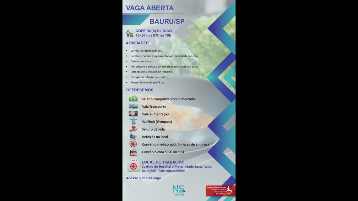 Copeiro(a) Clinico - 12x36 - das 07h às 19h - Hospital e Maternidade Santa Isabel - Bauru/SP