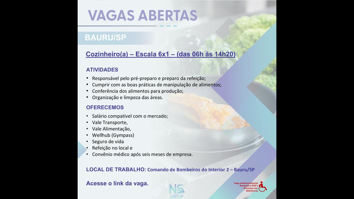 COZINHEIRO(A) - 6x1 - das 06h às 14h20 - Corpo de Bombeiros - Bauru/SP